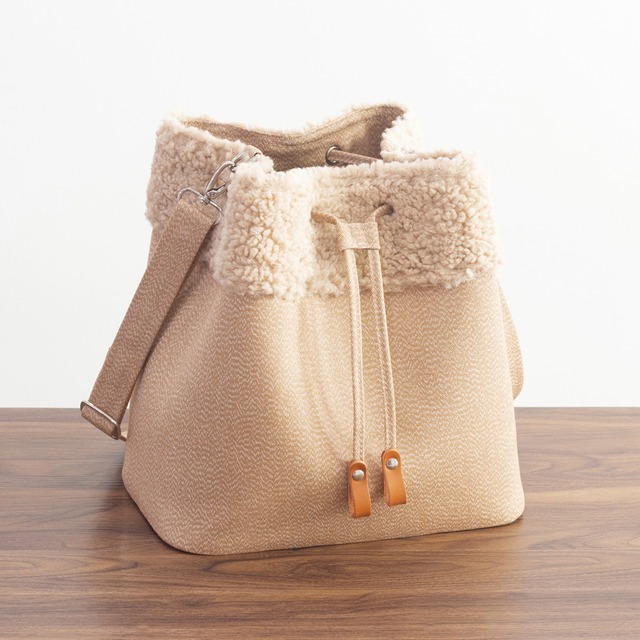 秋冬新作 ちょうどいいもこもこ感が大人かわいいボアx帆布【アーモンド】マルチバケットバッグ手提げ/肩掛け/斜めがけ