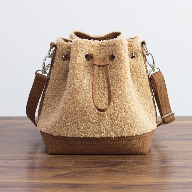 全8色 ボアx帆布 ミニショルダーバッグ Sサイズ モコモコ可愛い巾着