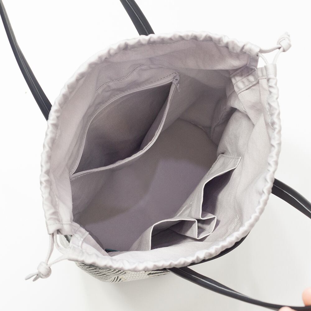 口は巾着仕様になっており、広く開けて物を出し入れしやすくなっています。