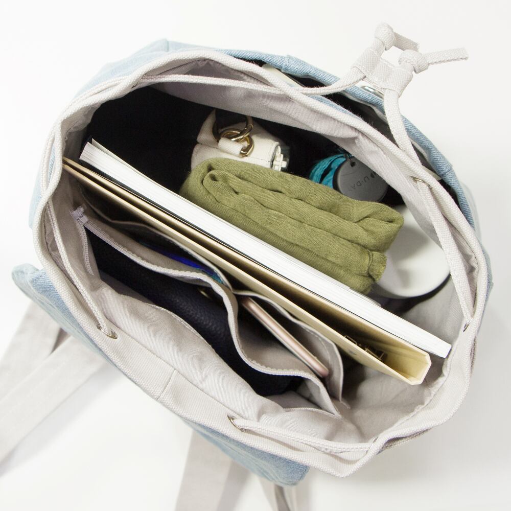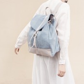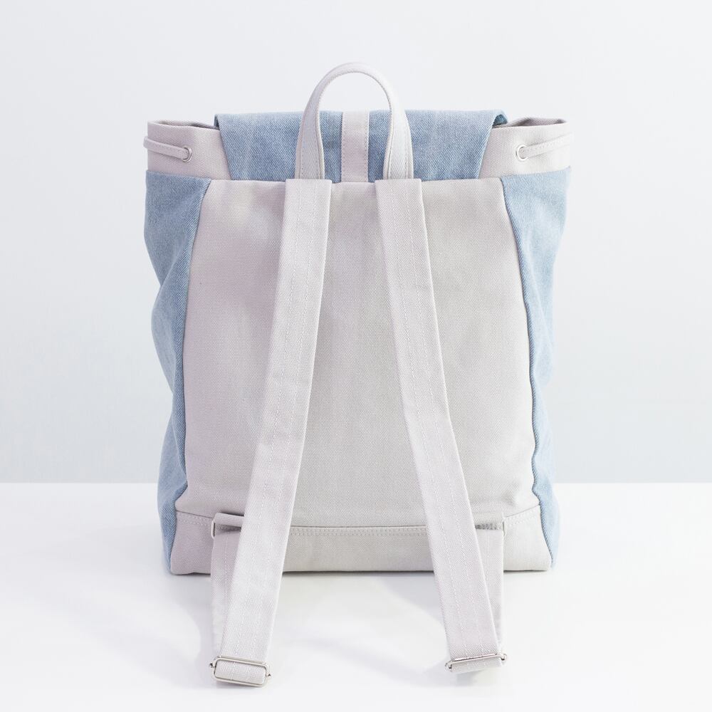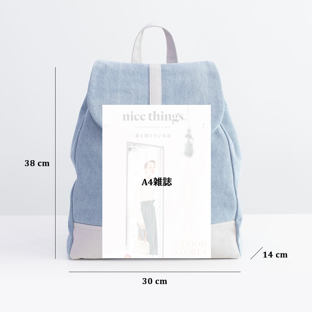 デニムx帆布 カジュアルバックパック Lサイズ【薄藍xライトグレー】A4サイズ対応