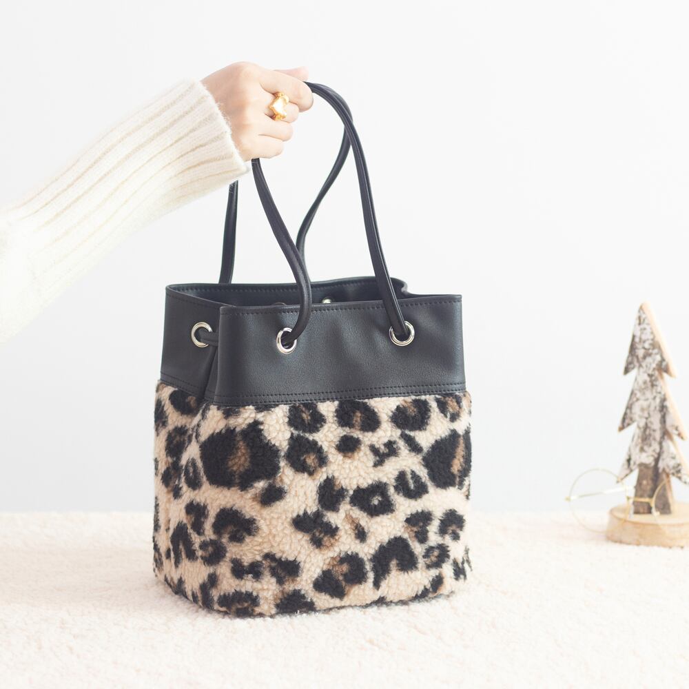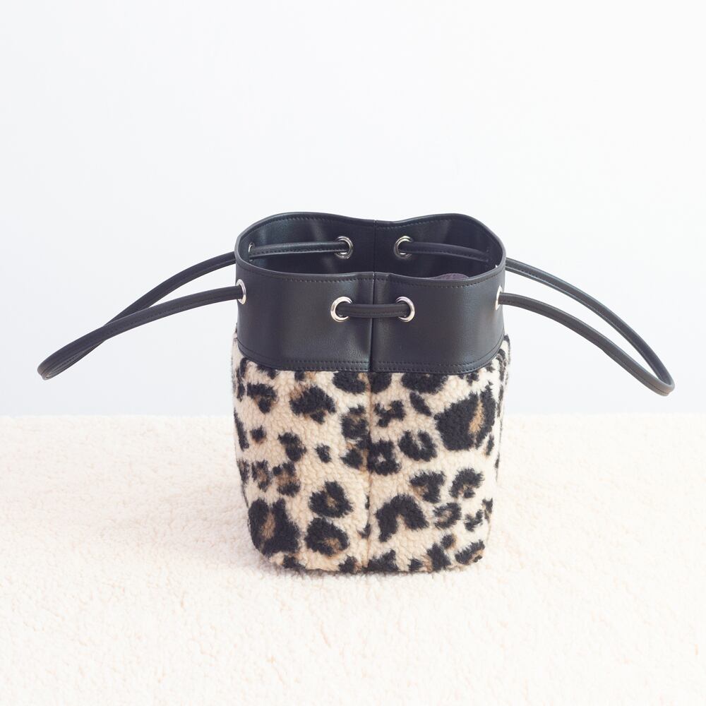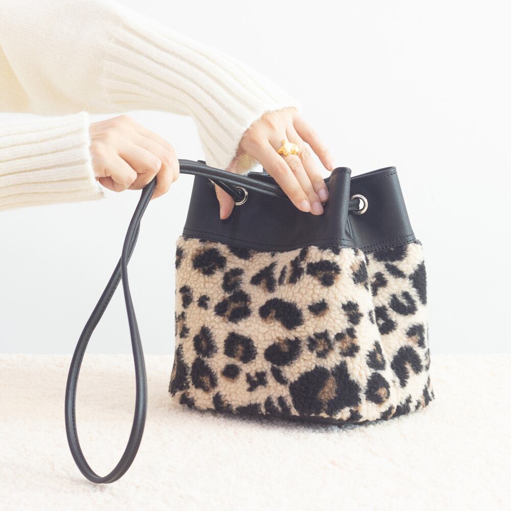秋冬のスペシャルエディション、変幻自在なバケット型マルチバッグが登場しました。取り入れやすい派手すぎず、可愛らしいモコモコのレオパード柄と、本革のような質感にこだわり特注した合成皮革と組み合わせしてみました。