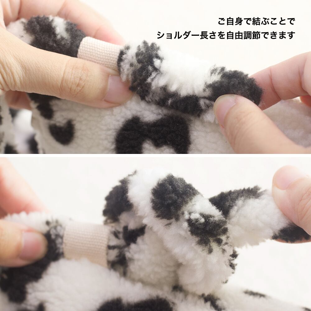 ご自身で結ぶことでショルダー長さを自由自在に調節できます。