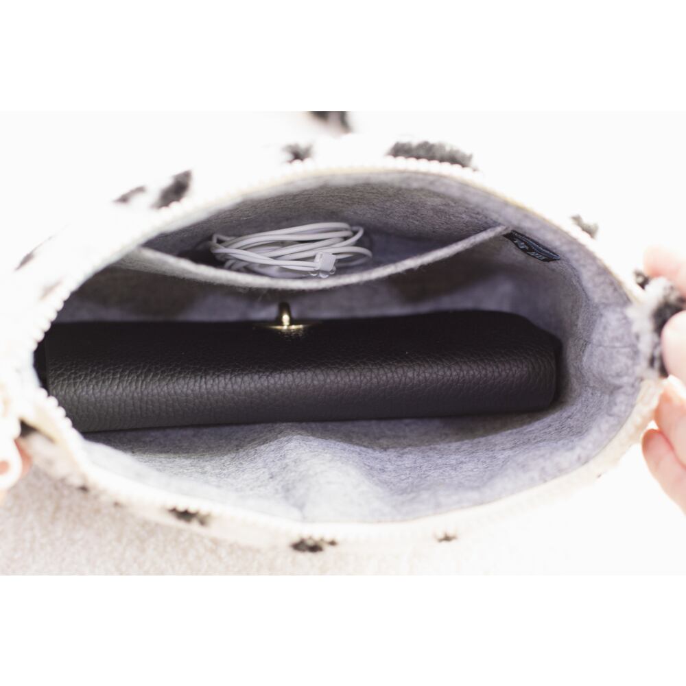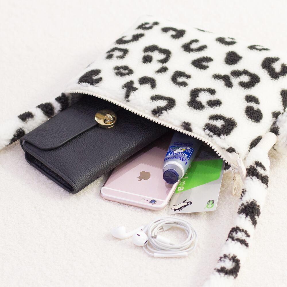 秋冬の定番、大人気なモコモコボアを使用し、ファスナー付きサコッシュを作りました。