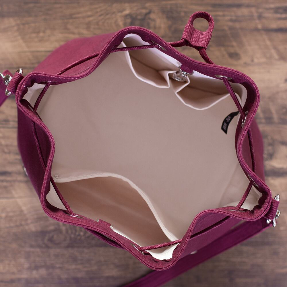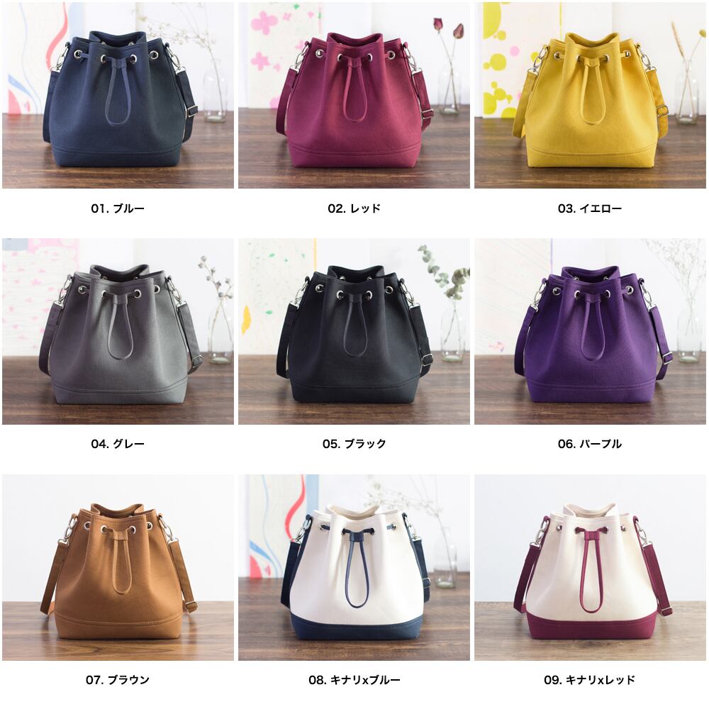 帆布マルチショルダー巾着バッグ Lサイズ【レッド】Large 3way Canvas Bucket Bag【Wine】