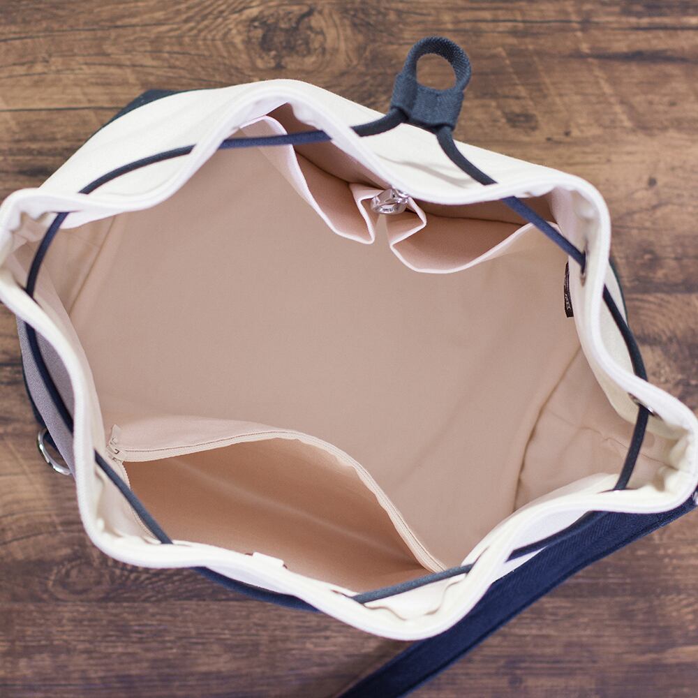 帆布マルチショルダー巾着バッグ Lサイズ【キナリxブルー】Large 3way Canvas Bucket Bag【Antique White x Blue Nights】
