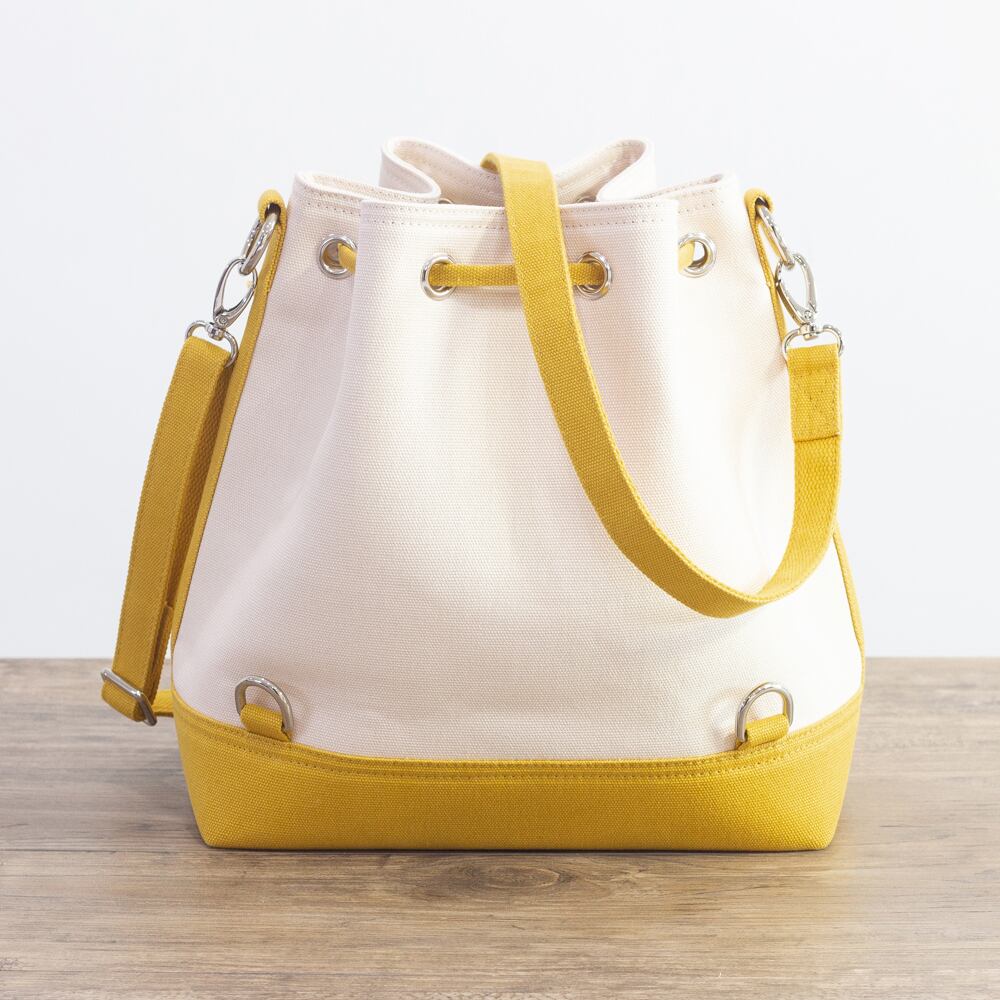 帆布マルチショルダー巾着バッグ Lサイズ【キナリxイエロー】Large 3way Canvas Bucket Bag【Antique White x Yellow】