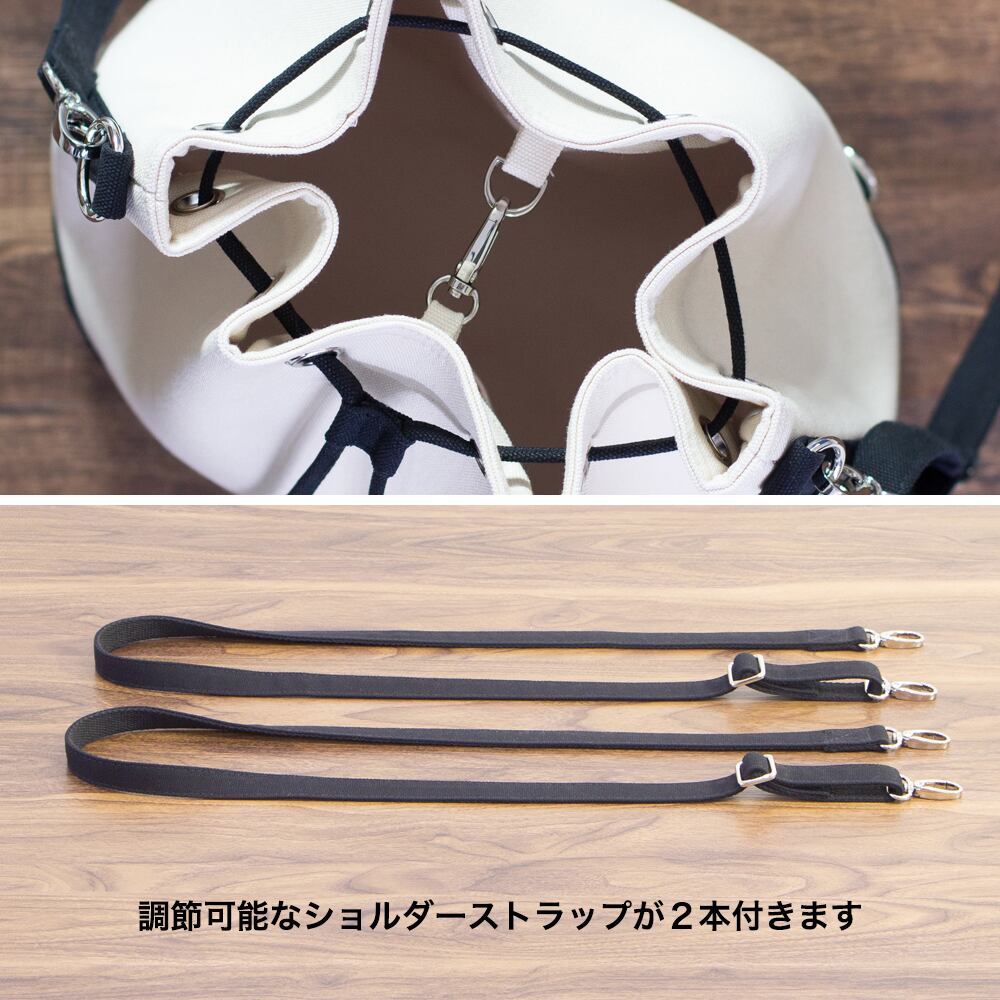帆布マルチショルダー巾着バッグ Lサイズ【キナリxブラック】Large 3way Canvas Bucket Bag【Antique White x Black】