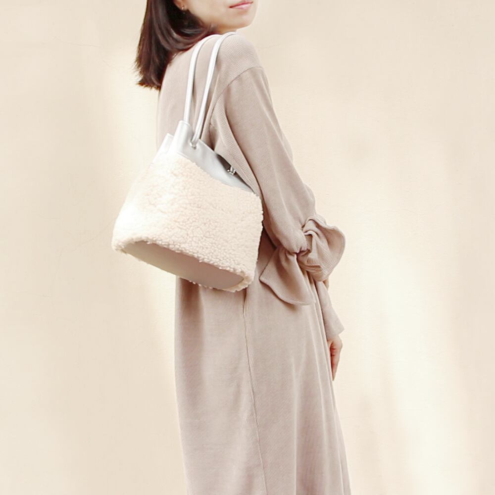 秋冬のスペシャルエディション、変幻自在なバケット型マルチバッグが登場しました。取り入れやすい派手すぎず、可愛らしいモコモコのレオパード柄と、本革のような質感にこだわり特注した合成皮革と組み合わせしてみました。